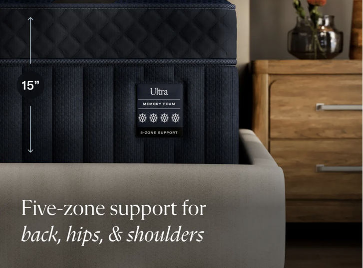 The DreamCloud Ultra Memory Foam Mattress offers a refined sleep experience with its medium firmness and advanced six-layer construction. It features a 4-inch CloudQuilt™ euro top combined with innovative phase change material to enhance cooling. This mattress includes a five-zone support layer and quadruple the memory foam support of the Classic model, providing targeted comfort and pressure relief for restorative rest every night. Ideal for those seeking expert-level support and cooling technology in a premium mattress.
