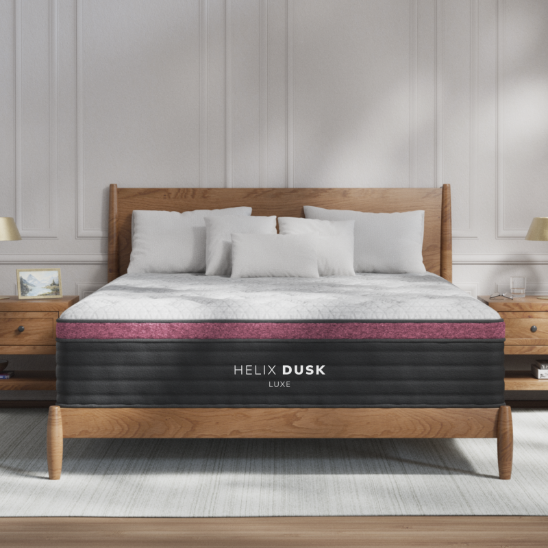 Helix Dusk Luxe is the medium-firm mattress rated 6.5 out of 10 on the firmness scale. This means it provide a balanced feel, not too soft or too firm. And offer support and comfort, catering to various sleep preferences without causing excessive sinking or stiffness.
