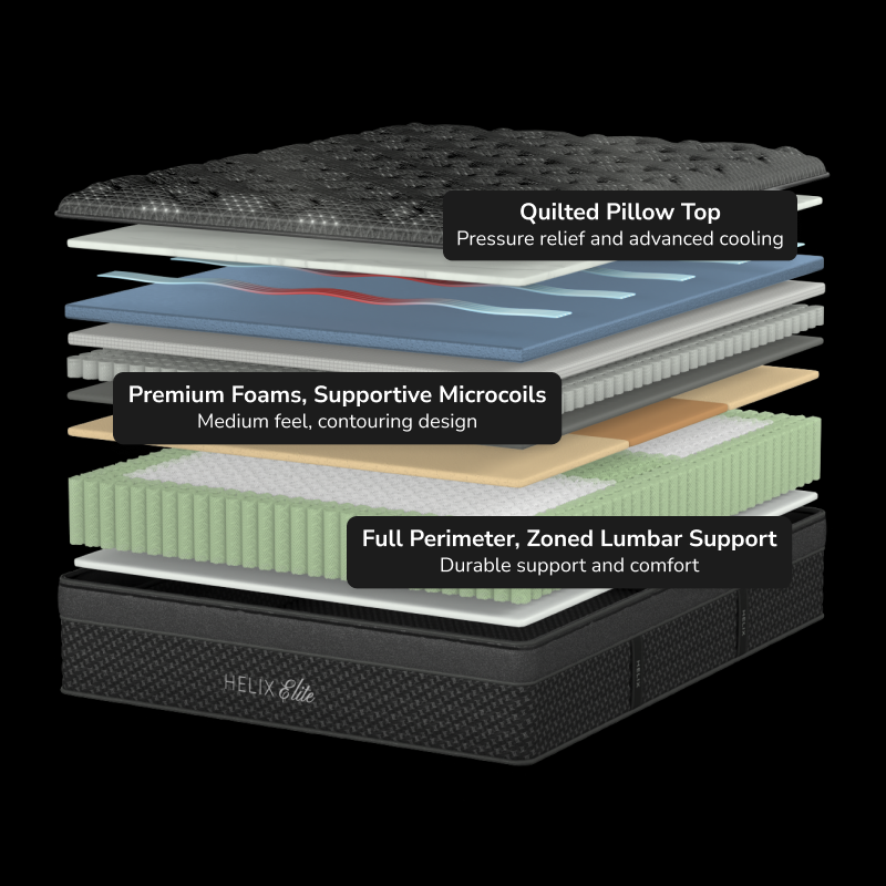 - Comfort Layer: Helix Dynamic Foam, a proprietary polyfoam, combines latex and foam benefits for contouring and responsiveness.